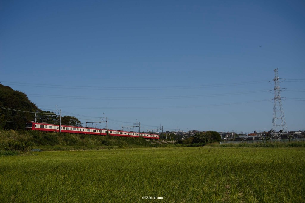 秋晴れ空の下、一面緑の畑を超えて、遠く終点を目指します。