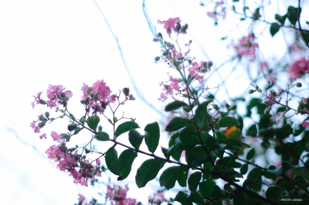 百日紅の花ですね。もう時期枯れてきています。開放でやってみました。