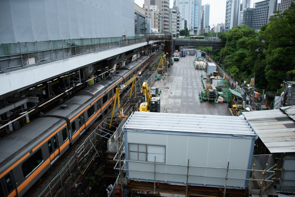 まずは曇天、広角側の開放で。比較的周囲まで線を描いている印象があります。しかし若干の甘さを感じます。軸上収差もよく確認できます。中央右側の工事現場や、背景のビルに注目。